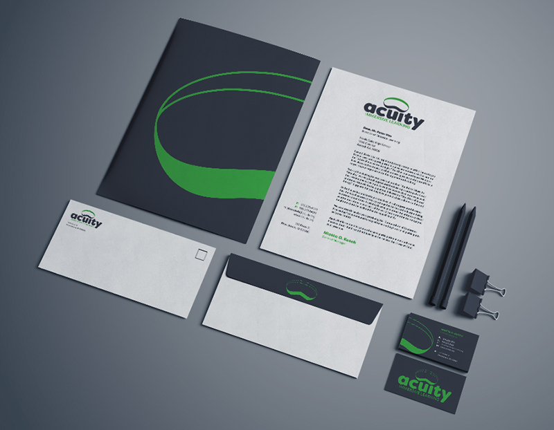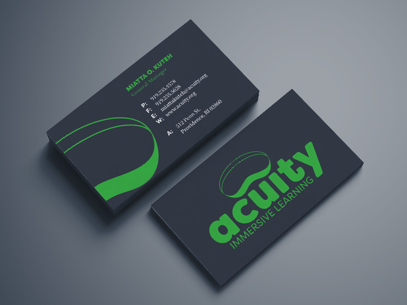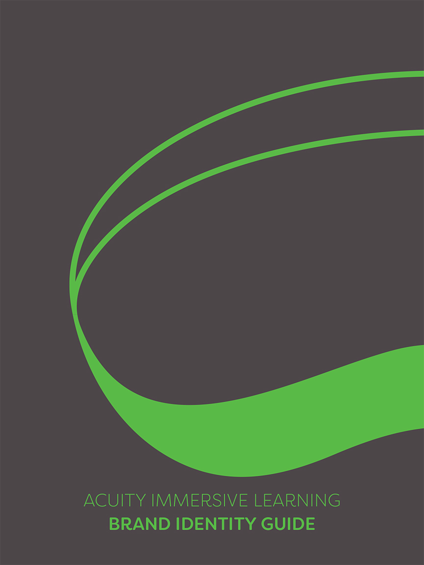 Acuity is a factitious organization that creates educational immersive learning applications for K-12 institutions. Collateral created for Acuity brand identity includes an informational brochure, brand identity style guide, and a functional virtual reality menu built in Unity Game Engine.