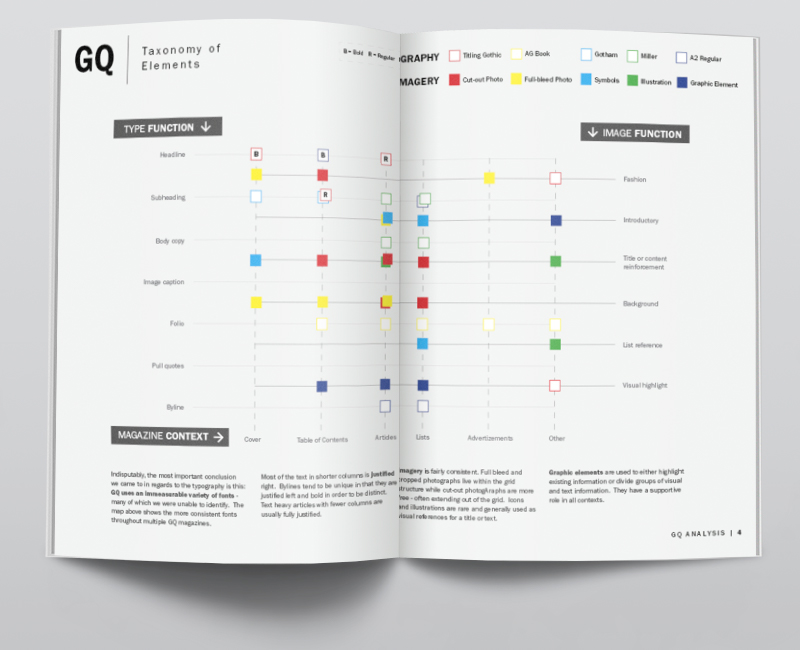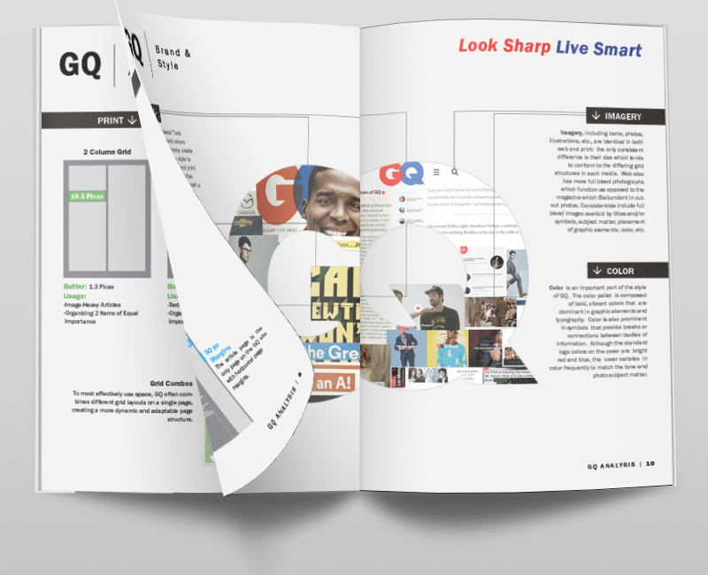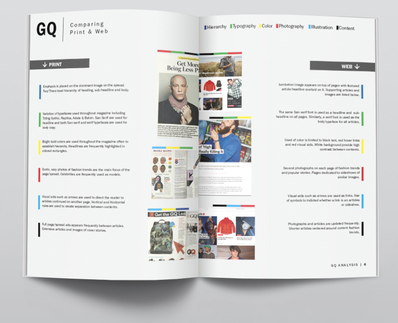 A collaborative analysis of GQ Magazine created in collaboration with two of my fellow NC State College of Design cohorts, Abby Gartner and Nate Winskunas.