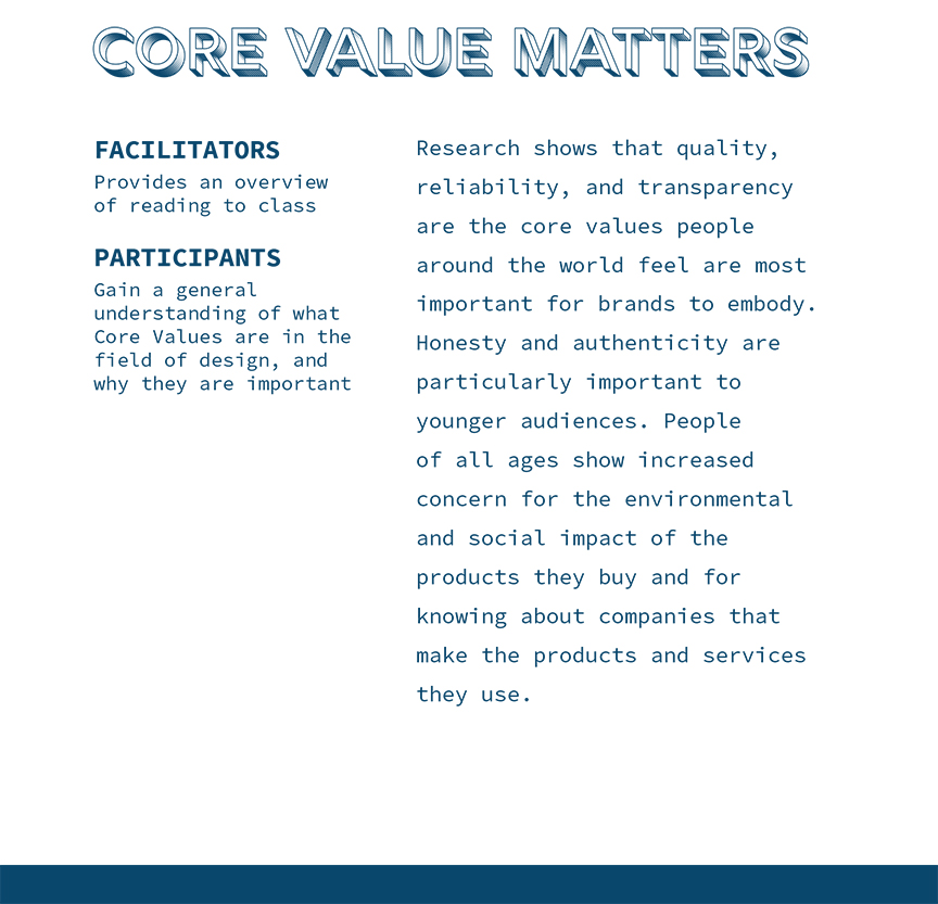 The MGD Core Values workshop was inspired by the AIGA Designer of 2025 article, "Core Values Matter."
